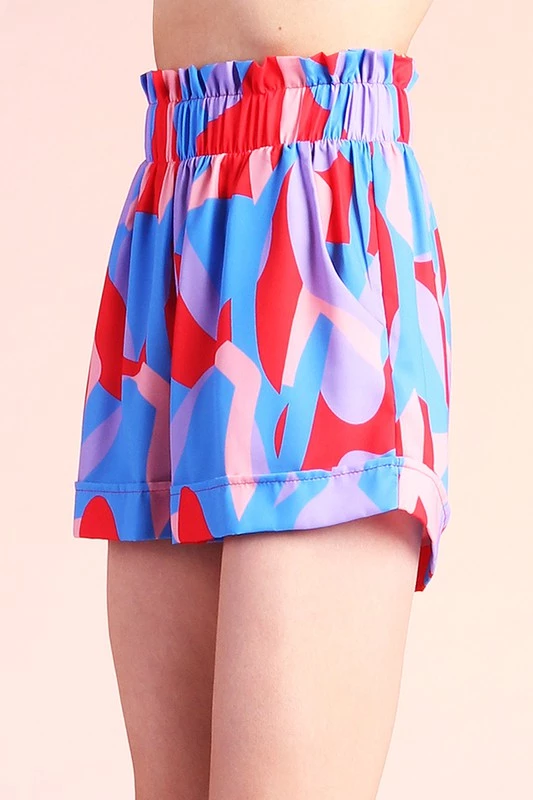 Are you looking for the perfect pair of dress shorts to spice up that summer outfit? Add some color with our blue and red color mix ruffle waist shorts