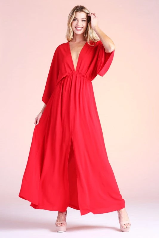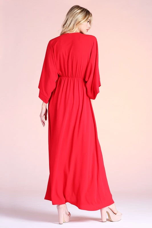 Are you looking for the perfect kimono maxi dress that is elegant and perfect for your next event? You will look and feel amazing in our red-colored textured solid kimono maxi dress