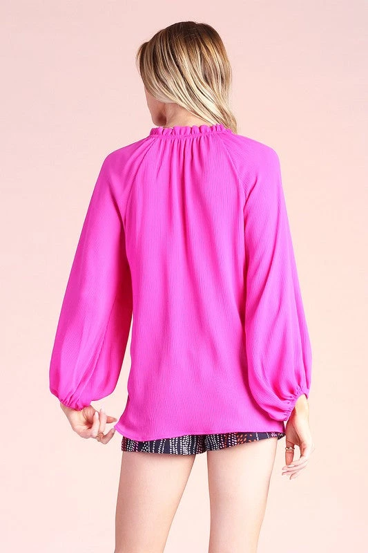 Are you looking for a new solid addition to your collection of amazing summer tops? You will love our fuchsia crinkle solid full sleeve tunic top with your favorite shorts or pants