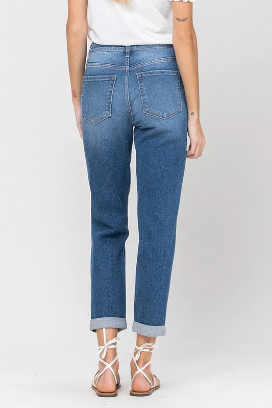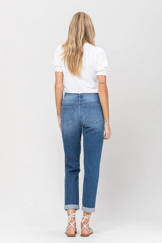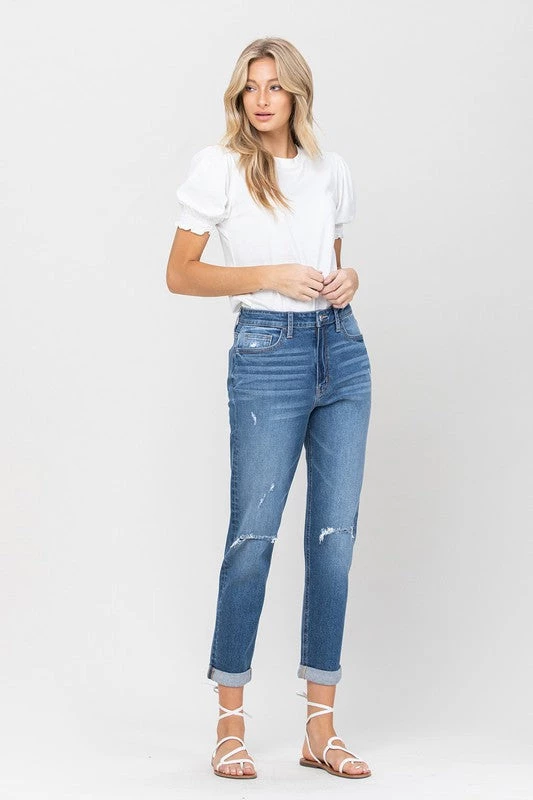 Are you ready to step up and get some awesome mom jeans? You will love our double cuffed distressed stretch mom jeans