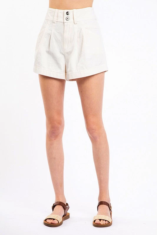 Are you looking for a pair of shorts with those 90s vibes? You found them with our white pleated double button shorts