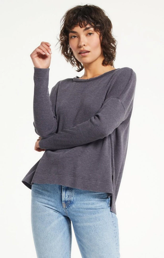 Are you looking for the perfect thermal top that looks amazing with denim on those cool fall days? You will want our Val charcoal thermal long sleeve top